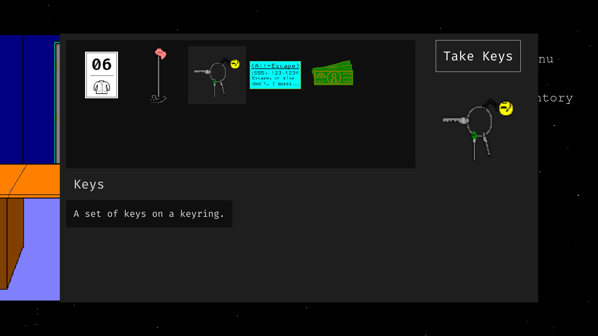 The artwork for Alt-Escape was drawn 100% in KDE KolourPaint, with animations edited in GIMP. All audio/music is by me.